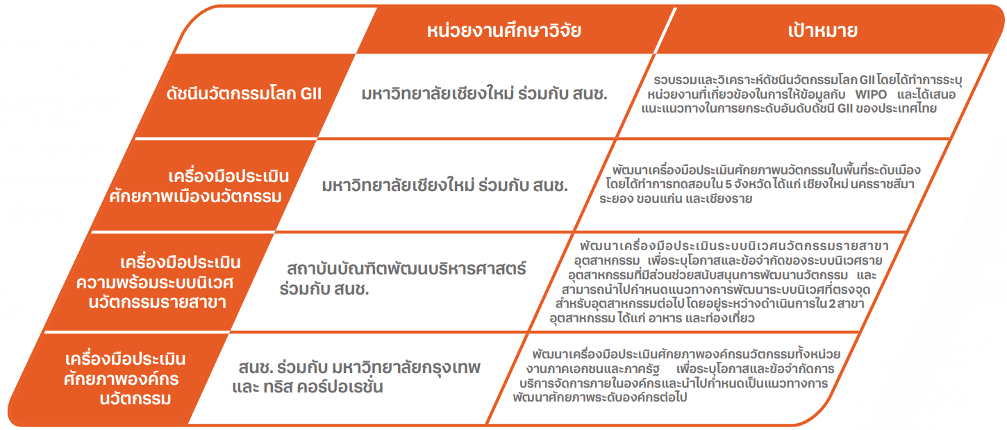 เพื่อให้สามารถติดตามและประเมินการพัฒนาระบบนวัตกรรมทั้งในระดับประเทศ ในระดับภูมิภาค และในระดับสาขา